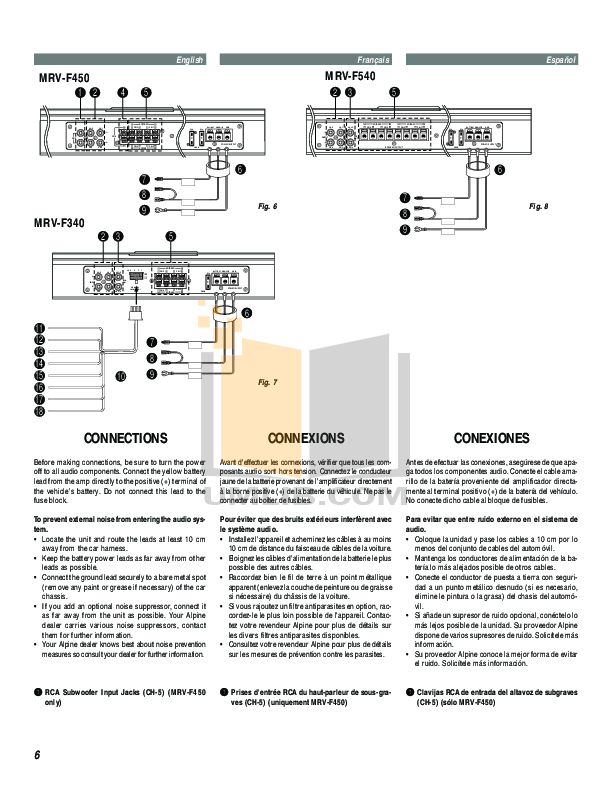 Connections, Connexions, Conexiones Alpine MRVF540 EN User Manual Page 6 / 27